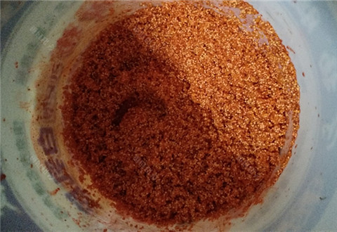碎玉米+小米三斤左右的量,牛逼红鲫水剂300毫升一瓶,牛逼红鲫粉剂3袋麝香粉3袋,红虫粉40克一袋,鱼味精30克一袋,白酒五六两,红鲫粉剂里面有蜂蜜水我还加了一些白塘。配料就这些了,然后就开始倒入各种粉剂。混合搅拌后开始倒入牛逼鲫水剂,再用酒把瓶子冲干净最后加白酒一起搅拌,不能有沉淀物。