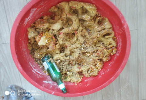 这是玉米面蒸熟之后加的,有豆饼渣,玉米粒,加上商品玉米粒