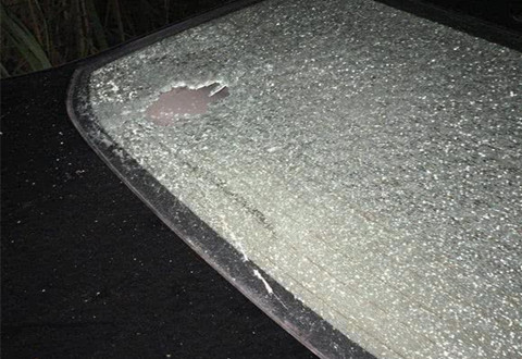 一块大石头从车窗的左后方被用力砸入车内,很明显,这是人为——这到底是怎么回事?
