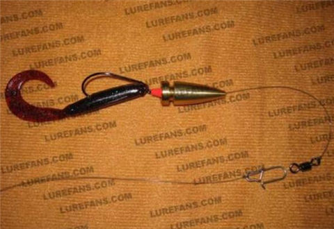 其中特别说明的是:子弹铜一般克数20克以上较德州钓组大一些,当然了可根据自己喜好和手感及水流情况做临时作战调整,响珠可以加两个,响珠后面如果为了防止摩擦主线和八字环的线结可以加一个太空豆做缓冲,子线一般是50厘米左右,这个没有固定的长度,根据环境调节,根据水流也要调节,具体没有教科书的方法,只有靠经验。曲柄钩用大一点的,钩尖稍微刺入软虫,防止挂底和挂草。