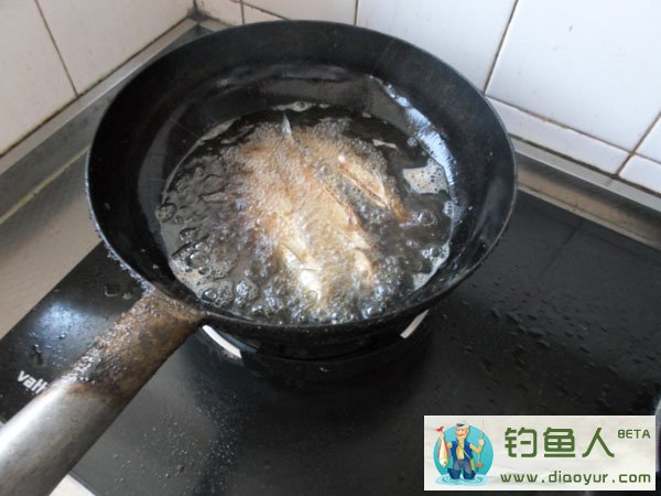 中火炸透小鱼,注意鱼要沥干水分,如需要少撒点干面粉