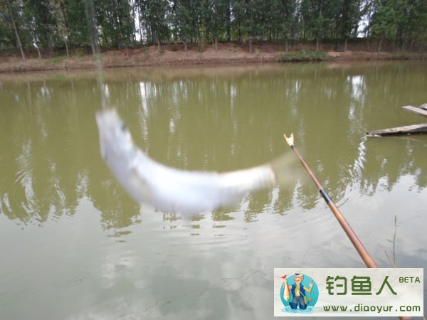 上午,不到10点,来到上次垂钓的老地方。池塘的水已落下去了,原先清澈的塘水变得浑浊不清,能见度不足10公分,水底不是泛起一股浑汤,鲤鱼拱地觅食的鱼泡清晰可见,水面可见鲢鳙搅动的涟漪,不时有鲤鱼拐子跃出水面。抓紧开饵,支家伙。水面不大,用3.6手竿、主1.5、子0.4、4号伊豆、小漂,水深1.3米、调平钓一。经过近一小时的垂钓,尝试了不同的调钓,底依然无口。而水面白条像开锅一般,既然钓底无口不如索性拉餐条。