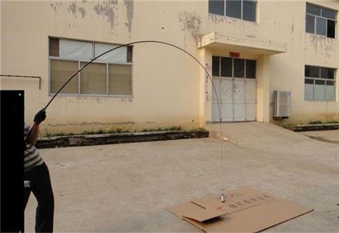 受理均匀度:仿照起鱼受力抬杆动作,一人拿住杆尖一人用力抬杆,查看鱼竿弯曲弧度是否均匀,如果杆尖至杆尾有明显折点,那么这鱼竿受力不均匀,容易断。
