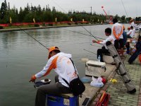 竿稍硬,便于控鱼。因为是以阴雨天为主,光线不强,可降低鱼儿的警惕、近岸垂钓,此季大鲫鱼吞食凶猛,浮漂有下顿动作应该就是上鱼的的前奏了。竞技池中的大鲫鱼经过赛前的练竿,虽然对各类饵料有一定的警觉,但遇上可口的饵料,还是会挡不住诱惑的,只要确定饵料、线组、钓法没有问题,剩下的就是坚持钓好每一竿。