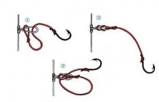 此种组合钩,可多准备几套,其鱼钩大小和线径粗细不同,因此当施钓时发现大鱼多可用粗线大钩的组;小鱼多则可用小钩细线的组。