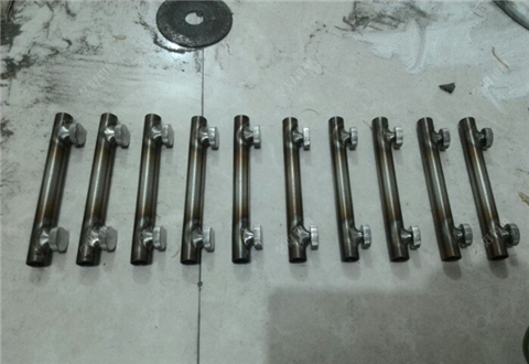 这个是支架中间那个控制角度的,用的Φ14mm,壁厚2mm的无缝钢管,支架的整体承重部位,焊6mm的丝帽。过程同上,都是打磨抛光的活。不再详述了。