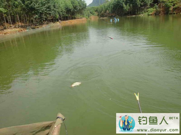 话说2013年8月的一天,二鱼郎和妻来到了平果县那良山塘,此山塘已经开了一个多月,就变成了残塘,鱼很难钓,所以现在很少有人来,一天钓费30元。故事已经开始了