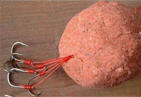 钓鲢鱼、鳙鱼的酸臭饵团一般是飞钩浮钓.即将饵团捏紧包在钩群之中的弹簧上。六七只钩子不放人饵团,而是均匀分别在饵团外。在水上层,饵团的颗粒粉末不断散落人水中,气味不断四散.缝鱼、缩鱼纷纷来食,吸人颗粒粉末滤食时连钩也吸人.就可被钩住。要吸引鲢鱼,鳙鱼在一个点进食,就要打得准,基本上打在一个点的前后左右不远的地方.才能使鲢鱼、鳙鱼聚来,不断进食,不断钓取。