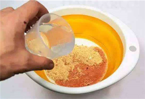 首先准备材料,麦精片九两、面粉一两(要用过炒香,记住别炒焦罗)。一起放进一个盆里,加入适量的清水后开始搅拌。注意别用手来进行搅拌,要用筷子,以防饵料变硬。拌均匀之后捏成鸡蛋大小的团子,装在上面的钩。因为这款诱饵易散,入水后没多久就会溶化,然后上面就变成了空钩,鱼儿被味道吸引过来之后就只能吃有饵的下钩。