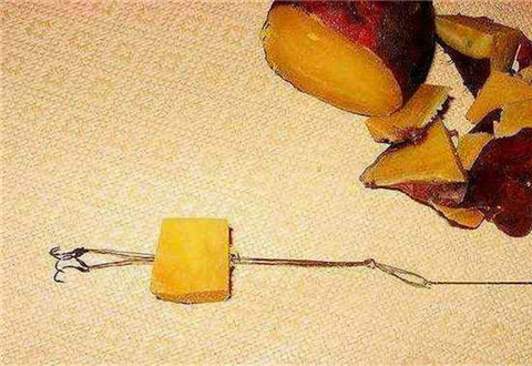在使用时,钩上挂红薯粒,入水之后,红薯粒上的粉状饵会散落一部分,这些散入水中的粉状饵起到诱鱼的作用。也可将红薯捣成红薯泥,拌入成品饵或饼粉、麸皮粉作饵料。