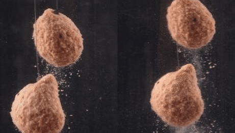 散炮,也称为散窝,将窝料做成比较干散的状态,进水即化开,人为的形成了雾化区域,从而达到诱鱼的效果,散炮饵在挂钩时需要在捏的力度上有所把握,饵料敞开雾化的速度完全由手来控制,捏的力度大则散落慢,捏的力度小则散落快。
