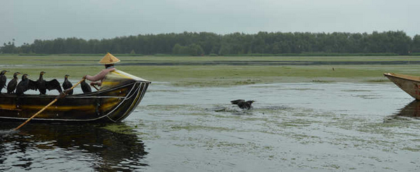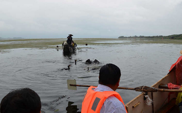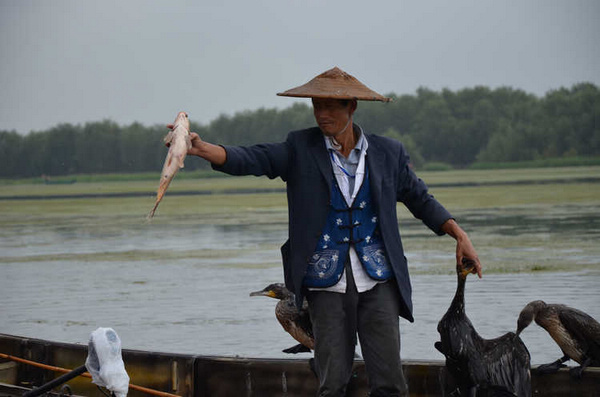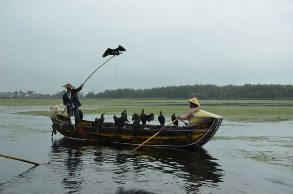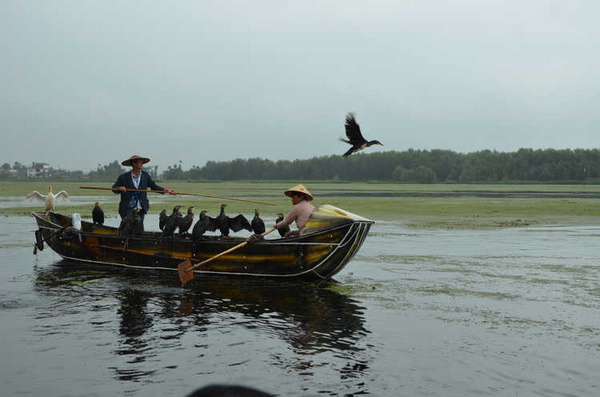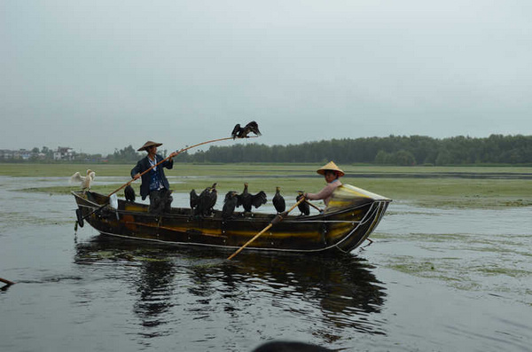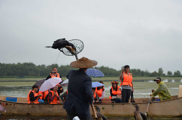 哥几个一起上关古渔村观看鱼鹰捕鱼