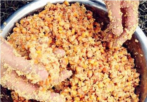 制作饵料的原料准备的差不多了,把所有的物料全部混合在一起,然后快速的搅拌均匀,这款饵料就制作好了,随后装入袋中就可以拿去钓鱼使用了,切记混合饵料的时候要多搅拌几次,不然搅拌不均匀会影响使用。