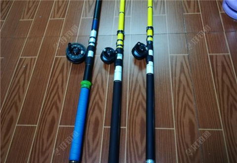 在等竿稍导眼胶水干的过程中,可以绑轮子到竿上了,过程不好拍,这个是绑好后拍的。绑的怎么样呀?