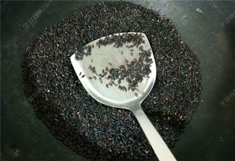 1.先把黑米放入锅中,用小火炒香,便于泡制时入味。注意:炒的时候要快速翻动,以免炒糊了!