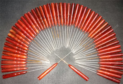 前针部位也一样,磨尖,三遍砂纸打磨才光滑