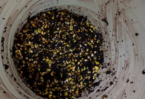 玉米已经煮好了。做窝料的玉米无所谓的,直接跟酒渣渣一块拌匀。因为打算泡上很久,所以加了些干的老玉米。这种窝料不同于别的老酵玉米整袋整袋往里扔。而是每次打其他窝料时往里掺一两把即可。