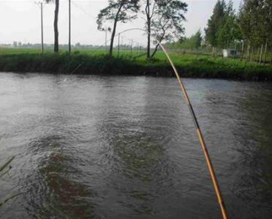 下面来说下钓了。来到河边,首先选则水流较平缓的位置,架上架竿器(必须是插地上)把竿子放上去,使竿稍高于水面一米左右,抛8分竿,水流会把线组冲于下游,让竿稍有点弯曲,观察线的方向及下垂度来判断水深(这个要多钓几回才能总结,要慢慢来),再视水流情况进行打窝。如果是大米,窝打在竿上游1米至2米处竿稍前1米处即可。因为米重量轻,易冲走。如果是打砣状商品饵就竿正前方。