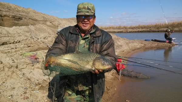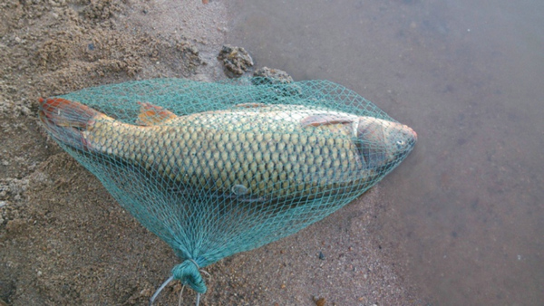 这是钓友老王大哥今天钓的7斤重的野鲤,我帮抄上来的。虽然不算大鱼,但对于我们这些经常钓野河的钓友来说,能钓上超过1斤重的鱼都要高兴几天的应该是个奇迹。