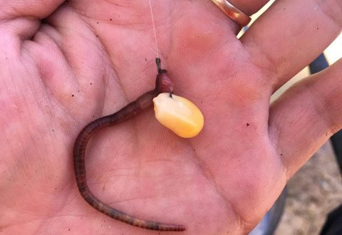 如果在挂上蚯蚓后扣上一粒玉米,就能完美解决。