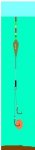 如果我们将浮漂上调至露出一到两目时,由于水线的延长和浮漂部分出水使其对钓组浮力的减弱,此时钩饵在水就会出现双饵触底的状态。如图4