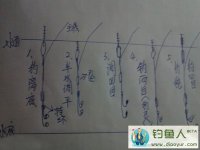 先说图2,这是挂饵半水调平的示意图,这个状态是浮漂的浮力与钩、饵、转环、铅坠的重量的和相等(其他因素如主线的重量,水表面对于风线的张力等不计), 也就是说,这时只要鱼在水里对着饵料打个喷嚏,浮漂也会有反应。也就是相当灵敏。传统钓或者钓顶漂就是调平水钓1~2目,也就是浮漂调平水后,往上撸浮 漂,知道浮漂露出1~2目即可,此时双钩已经卧底,如有鱼吃食的话浮漂会换换升起也就是平时所说的顶漂,如遇到大鱼可能会直接黑漂。