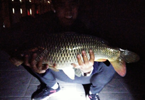 我立马打开手电,看见了鱼头,真的好大。溜了有十几分钟,终于炒出水面。竟然有我们二只脚大,还是一尾妈妈鱼。要知道,我们的子线只有1.5,稍微不慎,就会切线跑鱼。