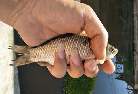 开杆鲫鱼一尾,皮毛白白净净的,就是个头小了点!