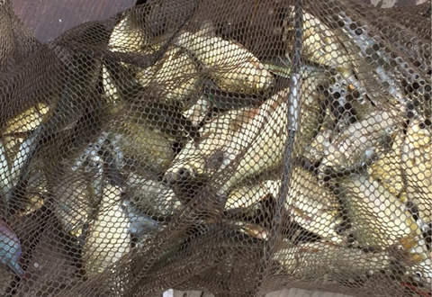 老伴不时的把小桶的鱼往鱼护里送,稍微时间长一点鱼儿就缺氧浮头。