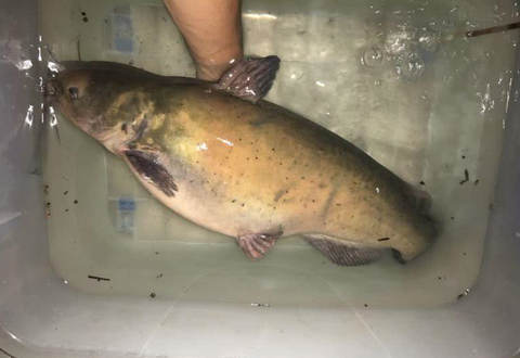 其实是条鮰鱼,看起来像是一条“放大版”的黄辣丁。不过,这并非本土长江鮰鱼,而是一条美国班真鮰,是一种养殖的经济鱼种,江西地区还非常少见,不知道为何在赣江里有出没。当地钓友猜测,这可能跟近日的大雨有关。这条美国鮰鱼,很可能是被大水冲击而来。