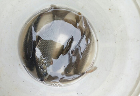 到河边见夜钓的钓友还沒下线,乃在努力用铒料在不停地粘铒提竿,一会儿又换搓铒,乃效果不尽人意,往鱼护里一看,只有2条小鲫,而岸边桶内却有十来个蟹,问下来,钓友午夜11点就来了,他说,都是蟹,鱼少见,我安慰他。