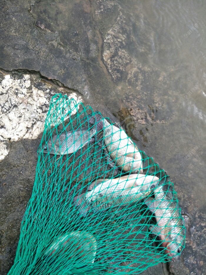 用拉饵在这个位置也陆陆续续的上土鲮跟罗非,渔护袋里也有十几二十条条鱼,都不大,大部分都从装鱼袋子的缝隙里逃走了,另一位同事下班后也过来了。