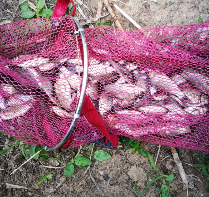 3、今天大叔没有放流,因为鱼护没有展开,感觉好多鱼都在鱼护上弄伤了,估计放生了成活率也不会高,带回家给老爸添个下酒菜了,下次必须注意!