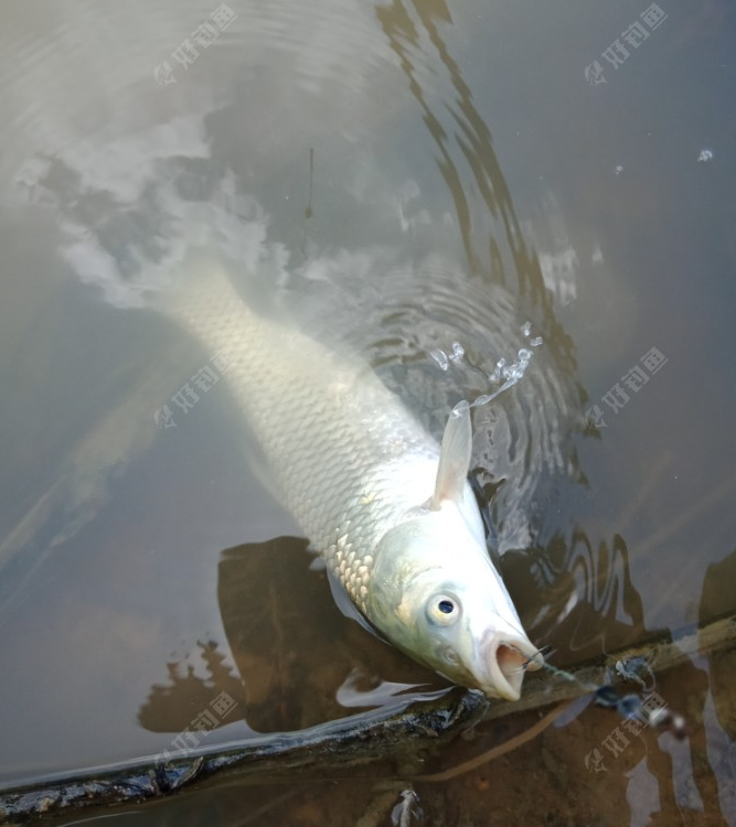 还是至前剩余配制的草鱼饵作钓,这钓点已习惯了用在以前好钓鱼平台买的七目吃铅0.95克二目加粗纳米浮漂垂钓,是我这些浮漂中吃铅最轻的。当初买的目的就是想钓鲫鱼,这二年来亦为我立下不少汗马功劳。当浮漂日间用的多就会退色,前段时间在平台上买了四瓶荧光漆修复,又变得非常清晰,平台卖的荧光漆质量好又实恵,是修补浮漂的一个好帮手。你看才开竿没多久一个清晰的连续点动二下然后上浮一目提竿刺鱼,有些手感可惜才遛了一公多钟露出水面,原来是小草鱼一枚还不到一斤,懒得拉上来直接于水面给它拍个照就此放生,等长大了再来相见吧。