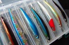 还有一类是身体上描绘多种 条纹图案的假饵,有些条纹图案是模拟自然界的饵鱼、另一类是据说是为了刺激增强对象鱼的攻击性而来。无论何种,都可以起到增强假饵身体的颜色反差效果。