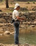 首先要有一个稳固安全的站立点,钓手目视标点方向。