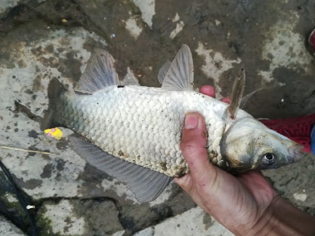 钓友见连续上鱼,而且个体还比他们的稍微大,再也不说饵料不如蚯蚓了,他也过码头打水开饵,但是使终于上的鱼个体稍小,九点多钟,陆续来两三个钓友,在右边,我向上游(左边)移二三米,抛竿还是在原来的位置,再一次补窝,突然浮漂下顿,扬竿,有份量,拉力大,心里十分高兴,新的钓友惊叹的说中大鱼了,钓友拿旁边钓友的抄网帮忙抄鱼,突然鱼线弹了回来,向后方弹去,切线了???仔细一看,没有呀!脱钩了,虽然没有看到鱼,但是从竿子的弧度与重量可以感觉到鱼不小于三斤,虽然鱼跑了,还得继续垂钓,直到十一点多,陆续又上了二尾鲫鱼,个体都在七八两!饵料用完,准备收工,共收获鲫鱼四尾,鲫鱼四尾,罗非鱼一尾!估计在3.5斤至4斤,