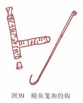 第一种是钩钓。夏日鳝鱼活动极活跃,正是钓鳝的好时机。黄鳝的钓法很多,各地都 有自己的独特钓法和自制专用工具(如图39)。