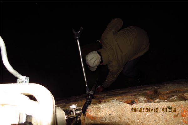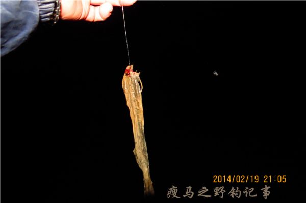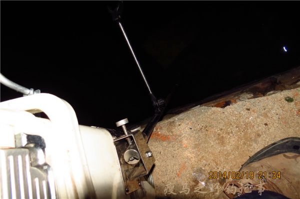 21:34分,我正在擦手准备抽烟呢,猛的一个漂亮顿口,俺一激动,鱼没搞到,把撑杆的砖头又给搞下水了。本来直挺挺翘着的撑杆一下子就痿了。