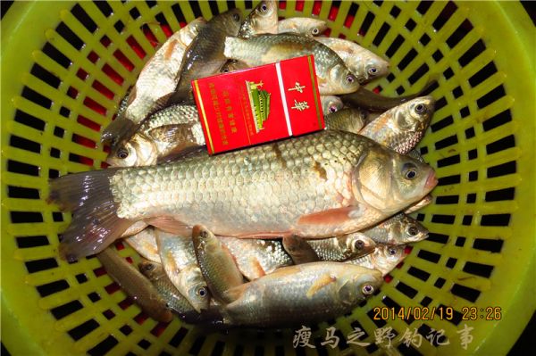 这就是今晚的钓获,也是2014甲午年钓鲫鱼最多的一次,最大的一次。前几日风大雨大水更大,依然坚持夜钓,但收获惨淡。今日无意到此河一战,竟然擒获斤鲫大板板,这正是有心栽花花不开,无心插柳柳成荫。