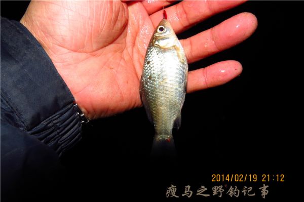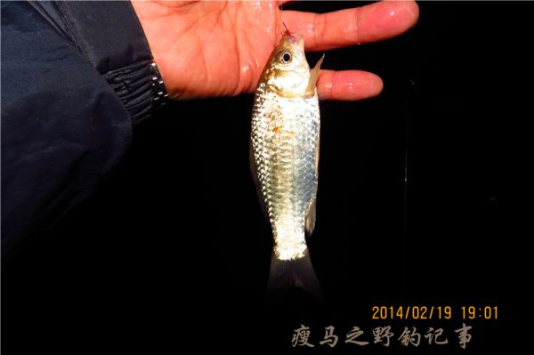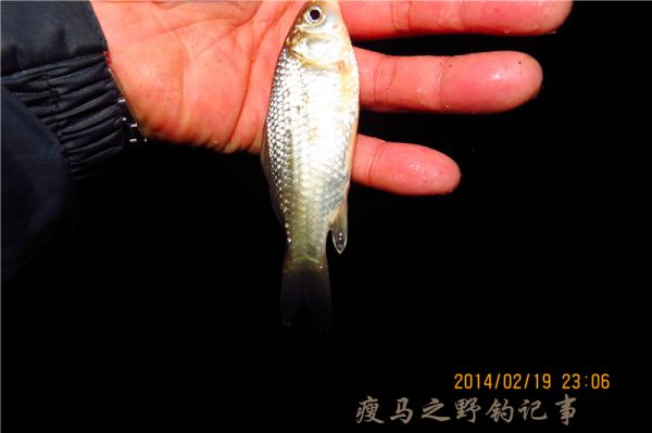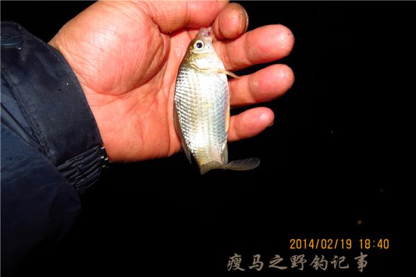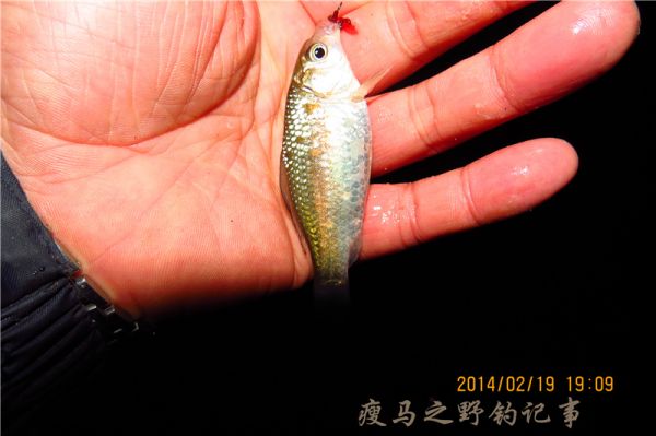本没抱太大的希望,18:40,跑铅到底的浮漂忽然一个小半目的下挫,看来有戏啊,扬竿刺鱼,竟然中鱼了,小麻将。