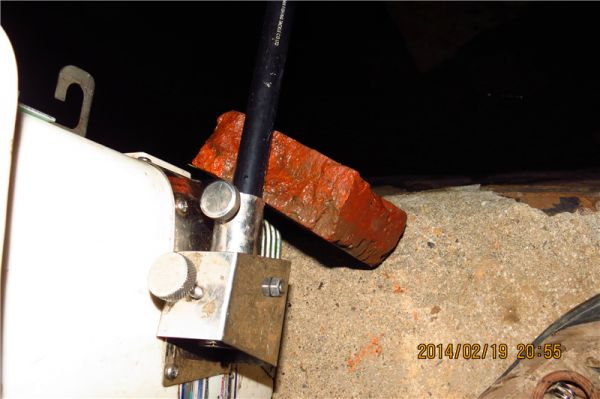 这就是那块砖,还是湿的,架撑杆的架子竟然焊点掉了,直接导致没法架竿,找了好久才找到这块宝贝,一番修正后,终于适用了。