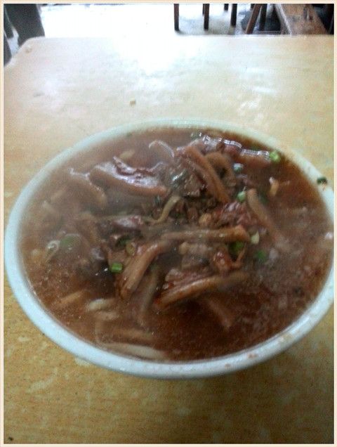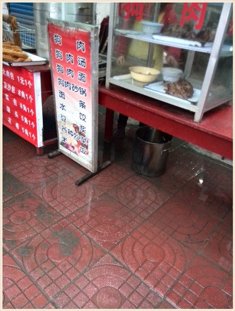 一路上小雨阵阵,先来到镇上来碗狗肉面,取取暖