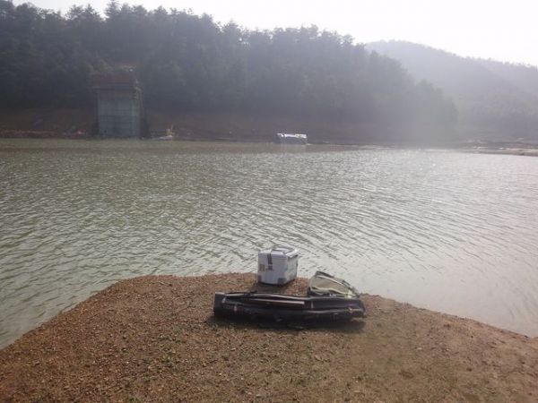 在库尾找了一块平地,试水线,1米左右深,太浅,放弃。