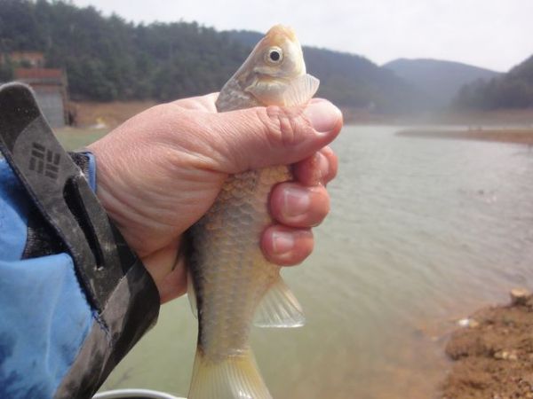 水中出现了鱼星,今年人口大发必成定局。偶尔有白条出现,不过没关系,水库里的白条都是大个,很容易钓上。