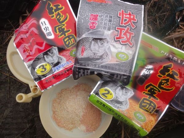 开饵:40%的红色军团本味鲫+40%的红色军团红虫鲫+20%的快攻。其实,这样搭配是否合理,我也不在意,我只是觉得,初春气温太低,还是以腥香型为主。