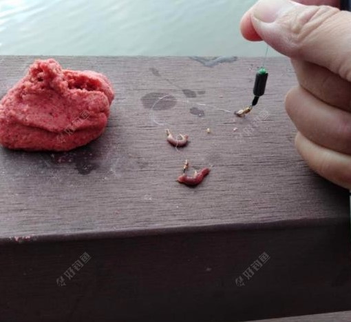 兄弟们管这种形式叫肉夹馍,呵呵,诱钓结合!不过这次面食水有点少了,应该再稀一点,水中状态会更好,诱鱼的效果更佳,这次把握好机会,调四钓一,重饵料发窝打底!
