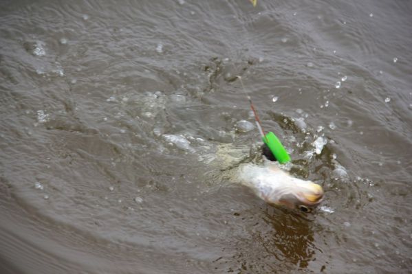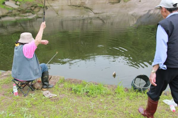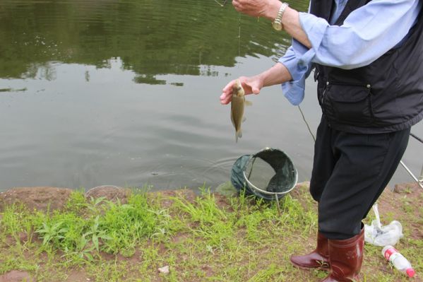 老爷子的海竿上鱼了,用的饭盒很小的钩子,翘嘴不小,只顾拍照竟然忘了抄鱼了直到鱼拉到岸边已经脱钩了,来不及用手了抓了直接用脚踢到岸上 哈哈~