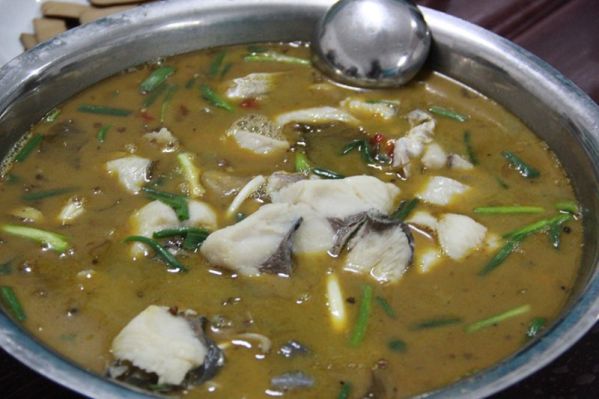 晚饭了主菜是一盆水煮鱼香味四溢,主厨是农家院主人小龙,味道相当的不错!据了解小龙曾在北京的川菜饭店工作过,怪不得呢!要了白酒几个 人喝了起来,聊天中得知有一钓友带着老爹老妈来钓鱼,他们也是北京来的而且住的离我都不远,真是缘分呐!老爷子已经八十五岁了,精神很好身体也很好海竿手 竿都能玩,非常敬佩!明天他们准备去另一个地方,我也决定一起前往,毕竟来一次还是要多转个地方好一些!