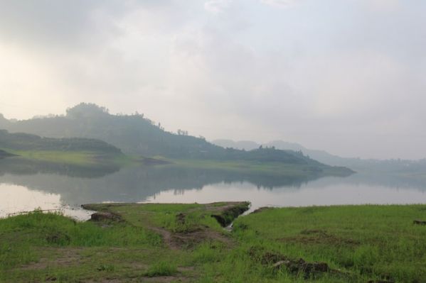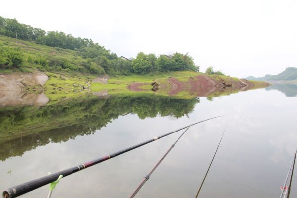 这个钓位是“地主”小龙帮我选的铧尖感觉很不错,今天的天气有点阴,湖面风平浪静,四周景色宜人,能在这样的地方钓鱼真是幸福啊!